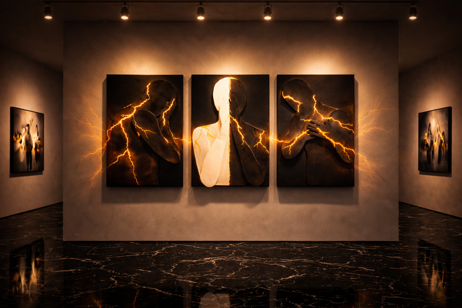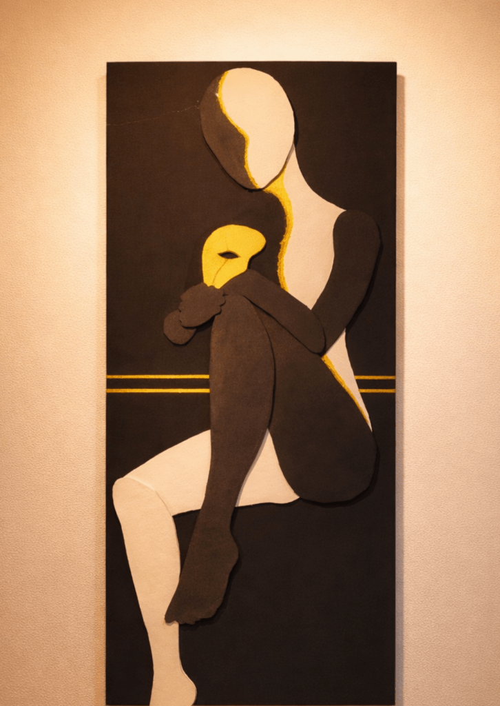 A concise glimpse into S. Walton’s contemporary minimalist oeuvre. Explore bold contrasts of black, white, gold, and red.